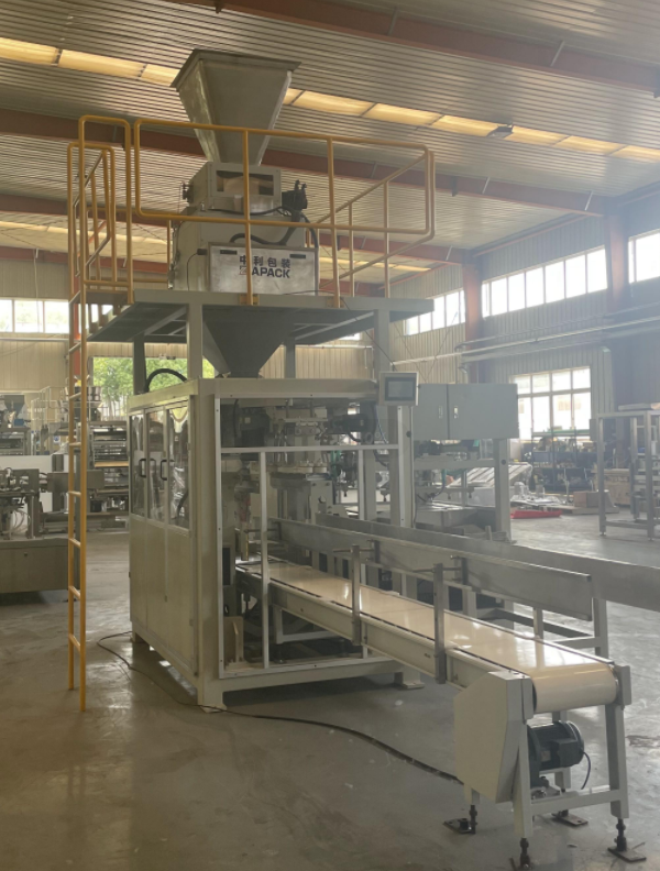Това звено е специално оборудване за автоматизирано производство главно за реализиране на автоматично опаковане (автоматично вземане на торби, подаване на торби, доставка на торби, отваряне на торби, пълнене и запечатване на торби) и извеждане на готовия продукт. Това оборудване напълно възприема PLC управление на екрана на интерфейса човек-машина, което значително улеснява работата, така че е необходимото оборудване за автоматизирано корпоративно производство.