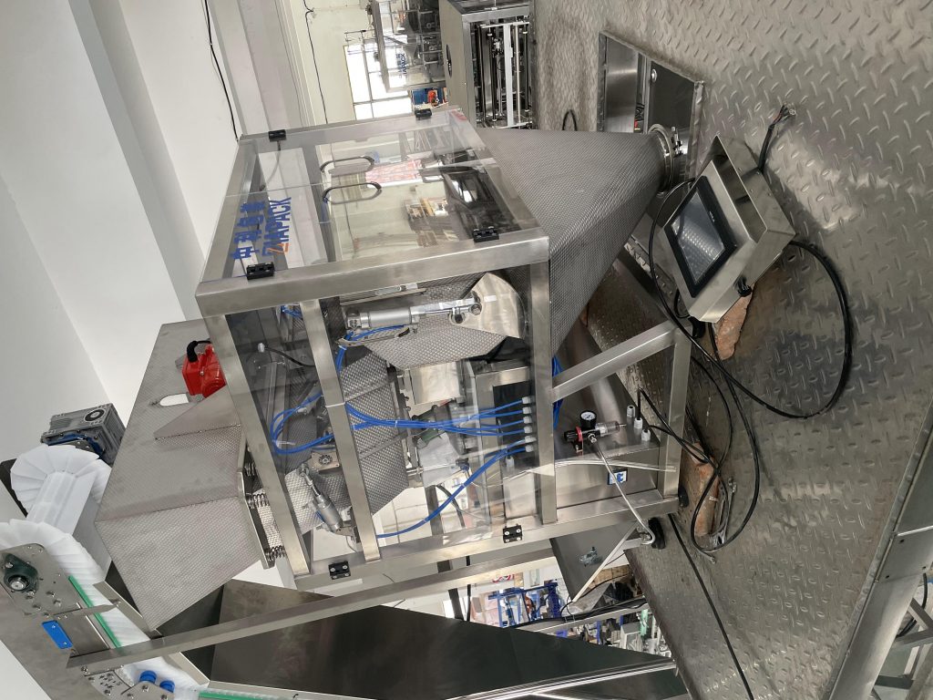Тази единична машина е със специален дизайн за опаковане на кубчета лед и тръба за лед в мека пластмасова торбичка. С функция за подаване на кубчета лед, претегляне, пълнене, автоматично запечатване на формиране на торбички и извеждане на пълна торбичка. Основната машина има функция за броене на торбички и кодиране на датата .