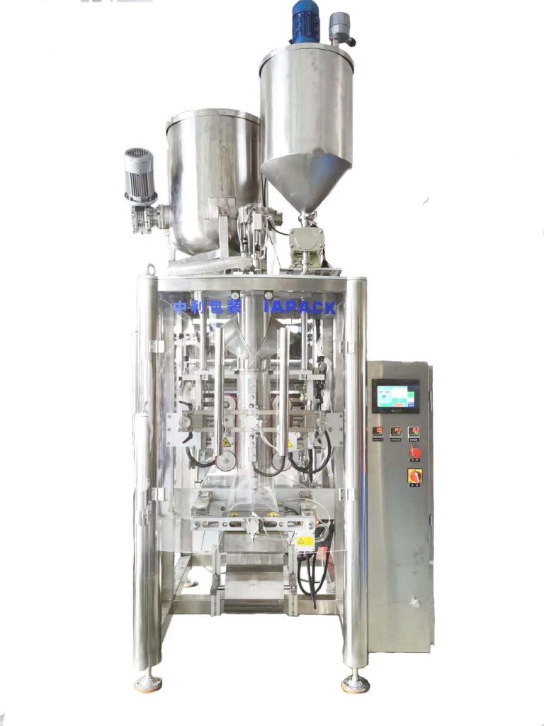 Това устройство е разработено за нуждите на течни и вискозни продукти. Уредът се състои от фугираща машина и опаковъчна машина; опаковъчната машина има проста структура и е лесна за работа; машината интегрира функциите за правене на торби, пълнене, запечатване и броене. Той използва серво мотор за изтегляне на филма и има функция за автоматична корекция на отклонението.