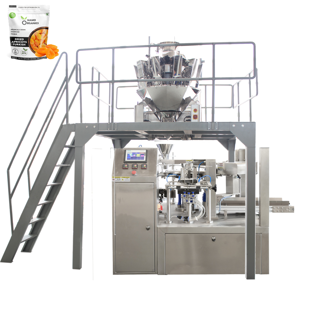 Машина за опаковане на ротационна торбичка с различно дозиране (като мултигласова теглилка, шнеков пълнител, течен пълнител и т.н.) могат да бъдат подходящи за автоматична опаковка за гранули, прах, течност, паста и др.