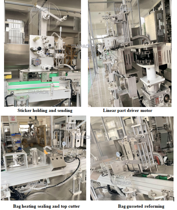 This machine is special design for make the gusset bag with flat bottom .After the full bag with product drop on this machine .This
