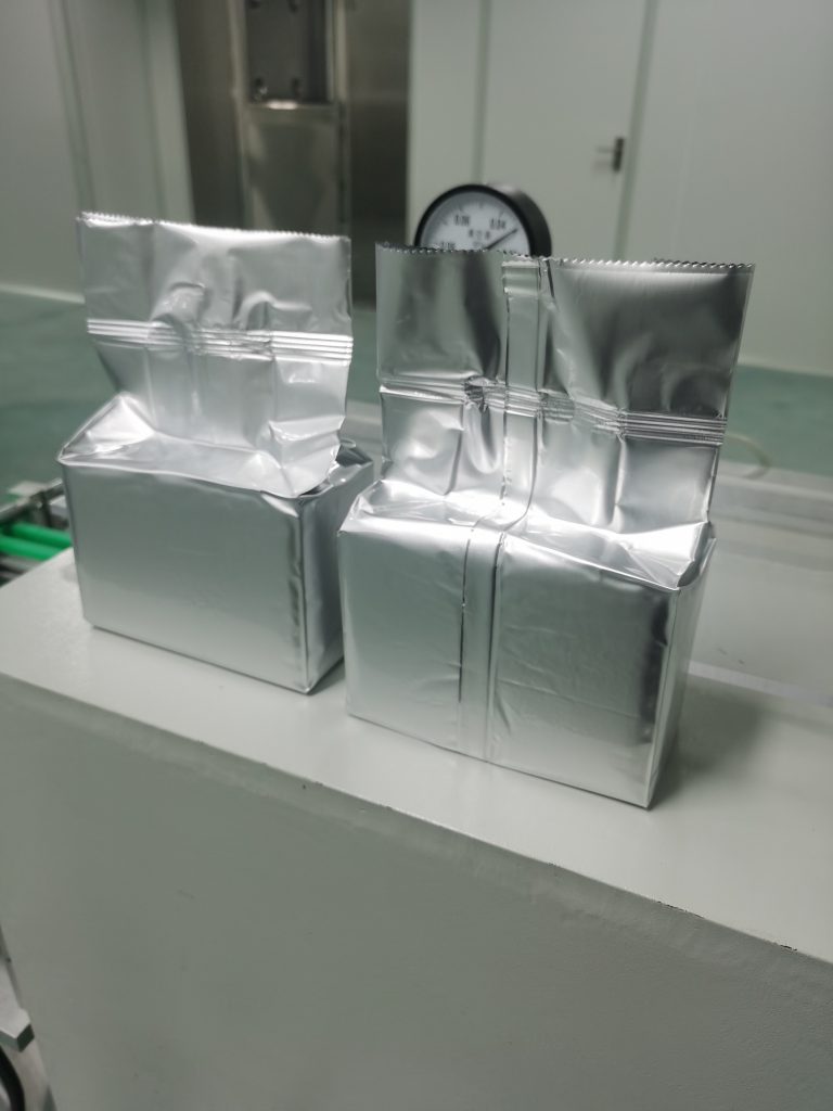 VFFS опаковъчна машина, оформяща чантата чрез ролков филм - Машина за претегляне и пълнене на продукта. - Пълнене на чанта с продукт, попадащ в модул за носене на чанта - Оформяне и почистване на върха на чантата - Сгъване на чантата - Предварително запечатване и вибриране на чантата - Изпращане на чантата в вакуумна камера ---Вакуумиране и окончателно запечатване --Завършен изход от торбата и подрязване на горната част на торбата ---Завършен изход от торба
