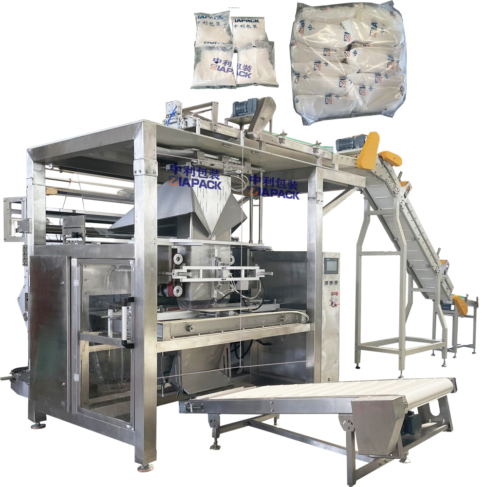 Тази машина е подходяща за опаковане на малка чанта в голяма чанта. Машината може автоматично да направи чантата и да я напълни в малка чанта и след това да запечата голямата чанта. Тази машина, включително вентилиращите модули: